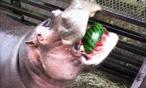 你知道吗?河马是非洲大陆上最大的陆地哺乳动物,它们以水生植物、水果和草为食。而在这次视频中,这只河马竟然对瓜情有独钟。看着它那满足的表情,仿佛在说:“这瓜,真好吃!”